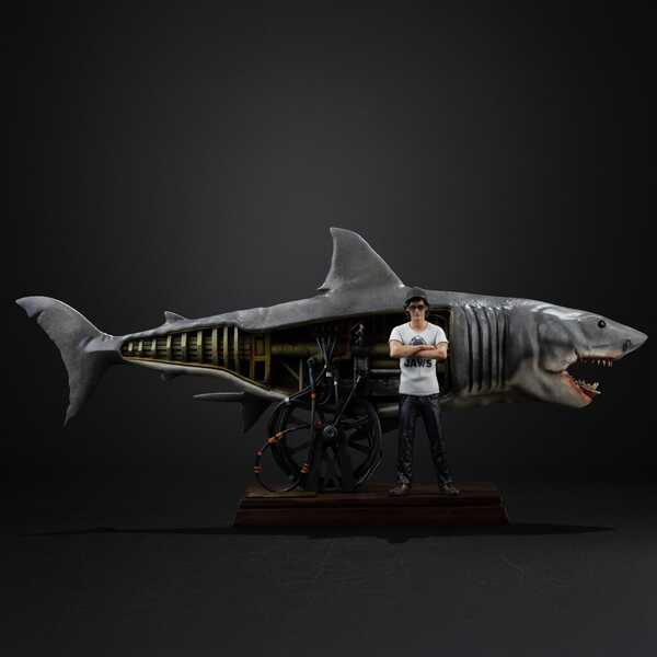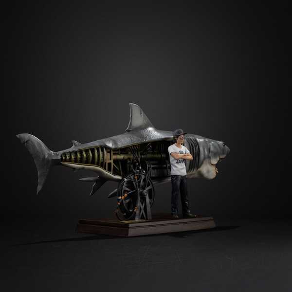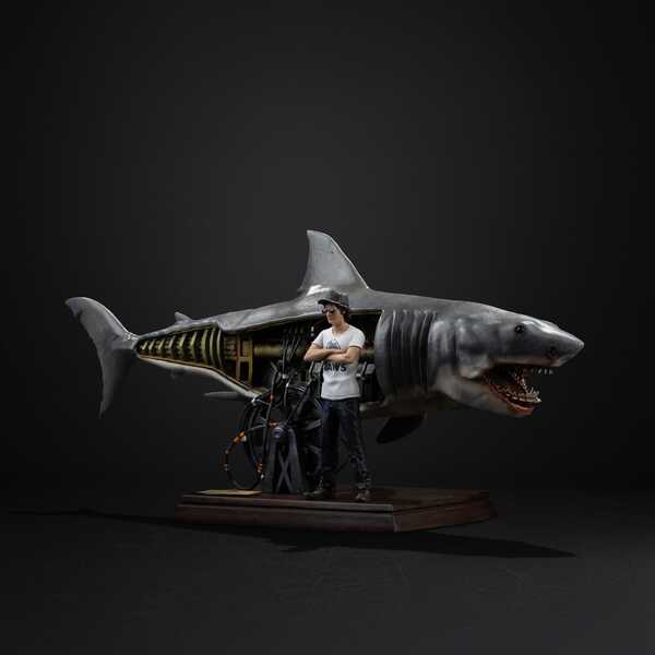 Steven Spielberg apparaît ici dans sa pose classique de réalisateur, aux côtés de l'emblématique requin mécanique, recréé avec une précision impressionnante. Cette statue est un hommage magistral au film qui a redéfini le septième art et au réalisateur devenu une légende vivante. Riche en détails cinématographiques, cette pièce est un véritable trésor pour tous les amoureux du cinéma.