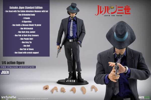 Infinite Statue & Collectibles et Kaustic Plastik présentent l'extraordinaire gamme de figurines articulées à l'échelle 1/6, inspirée par l'irrésistible série animée japonaise Lupin III Part IV : L'Aventure Italienne. Cette collection donne vie comme jamais auparavant au charme, au style et au mystère de Lupin et de sa bande, en commençant par le duo légendaire : Lupin III et Daisuke Jigen.