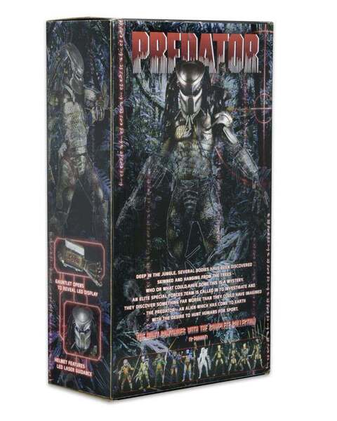 Basé sur le film Predator de 1987, cette immense figurine d'action marque le retour triomphant du Chasseur de la Jungle dans notre gamme en échelle 1/4 NECA! Étant longtemps sold out, notre toute première figurine Predator en échelle 1/4 a été mise à jour pour inclure des lumières LED dans le système de ciblage du masque et l'ordinateur portable qui s'ouvre. La figurine mesure une impressionnante 48cm de hauteur et est entièrement fidèle au design du film, avec plus de 20 points d'articulation et une combinaison de corps en maille. Livrée avec un sac à dos amovible, des crânes trophées et des accessoires de collier.
