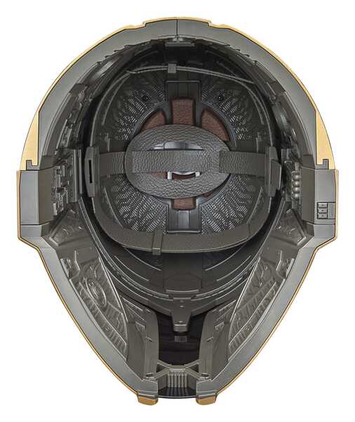 Réplique Premium 1/1 : Une reproduction fidèle à taille réelle avec une finition dorée métallisée spectaculaire, reproduisant l'aspect unique du casque de l'Armurière.