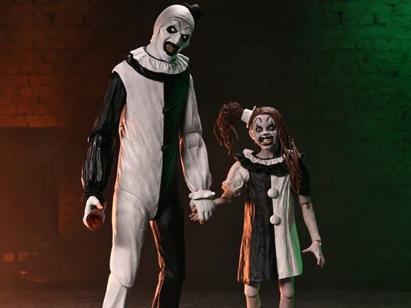 Issu du film Terrifier 2 de Damien Leone, NECA vous propose ce duo terrifiant composé d'Art le Clown et de sa sadique compagne, The Little Pale Girl.