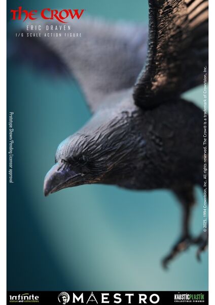 Corbeau en vol avec socle transparent.