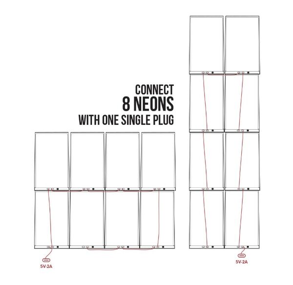 Jusqu’à 8 NEON branchés en série sur une seule prise, pour une exposition propre et sans câbles apparents.